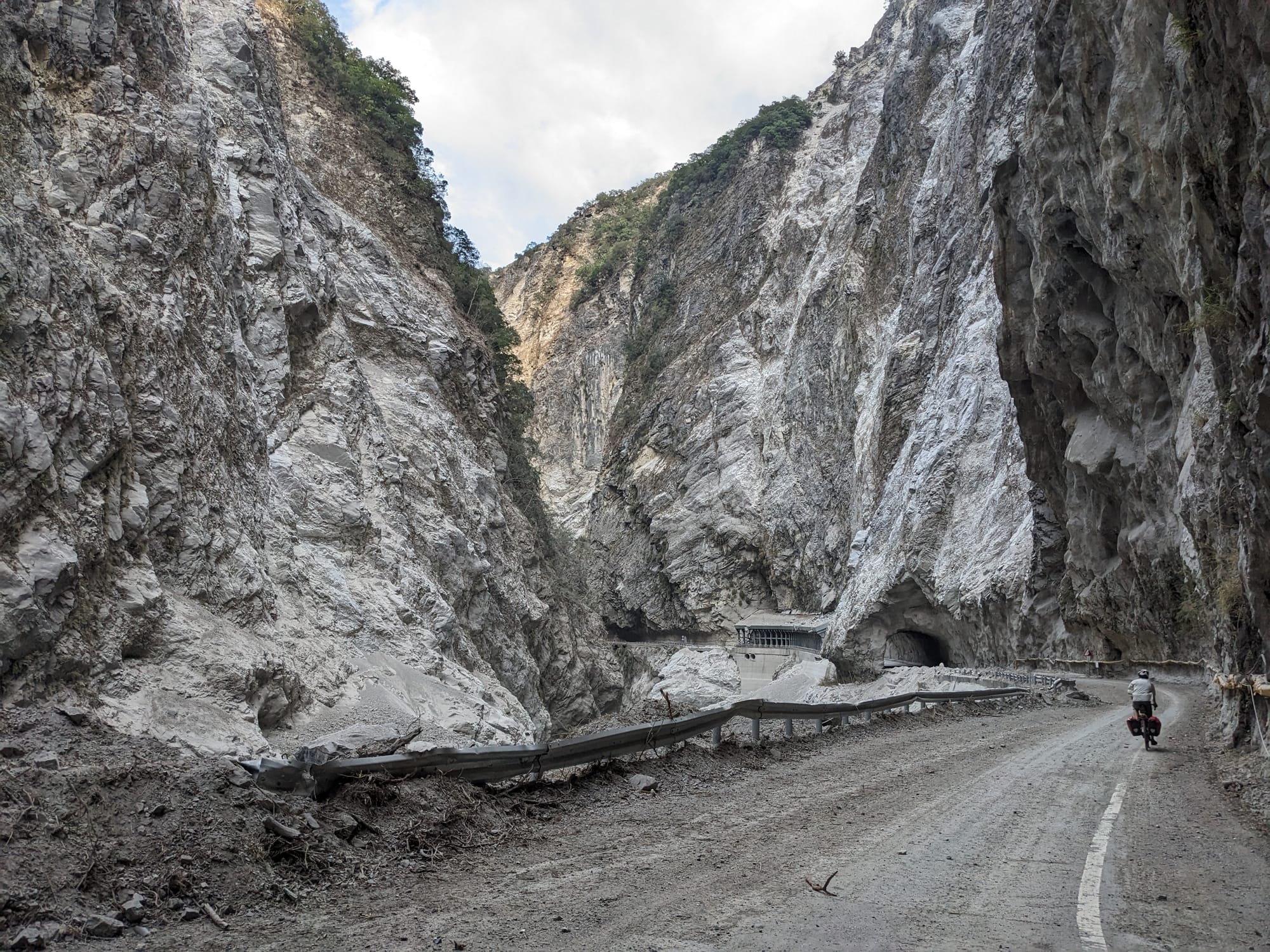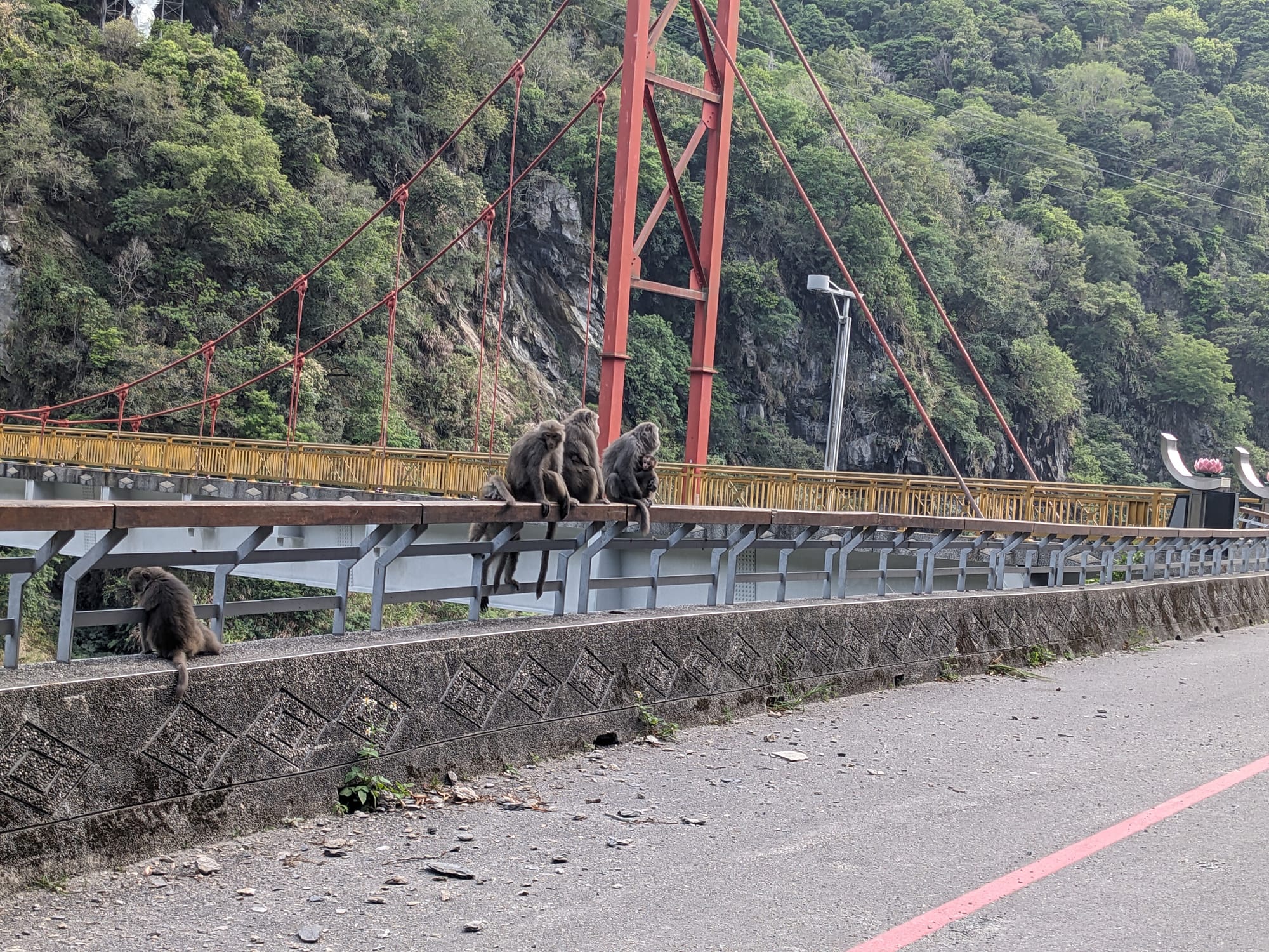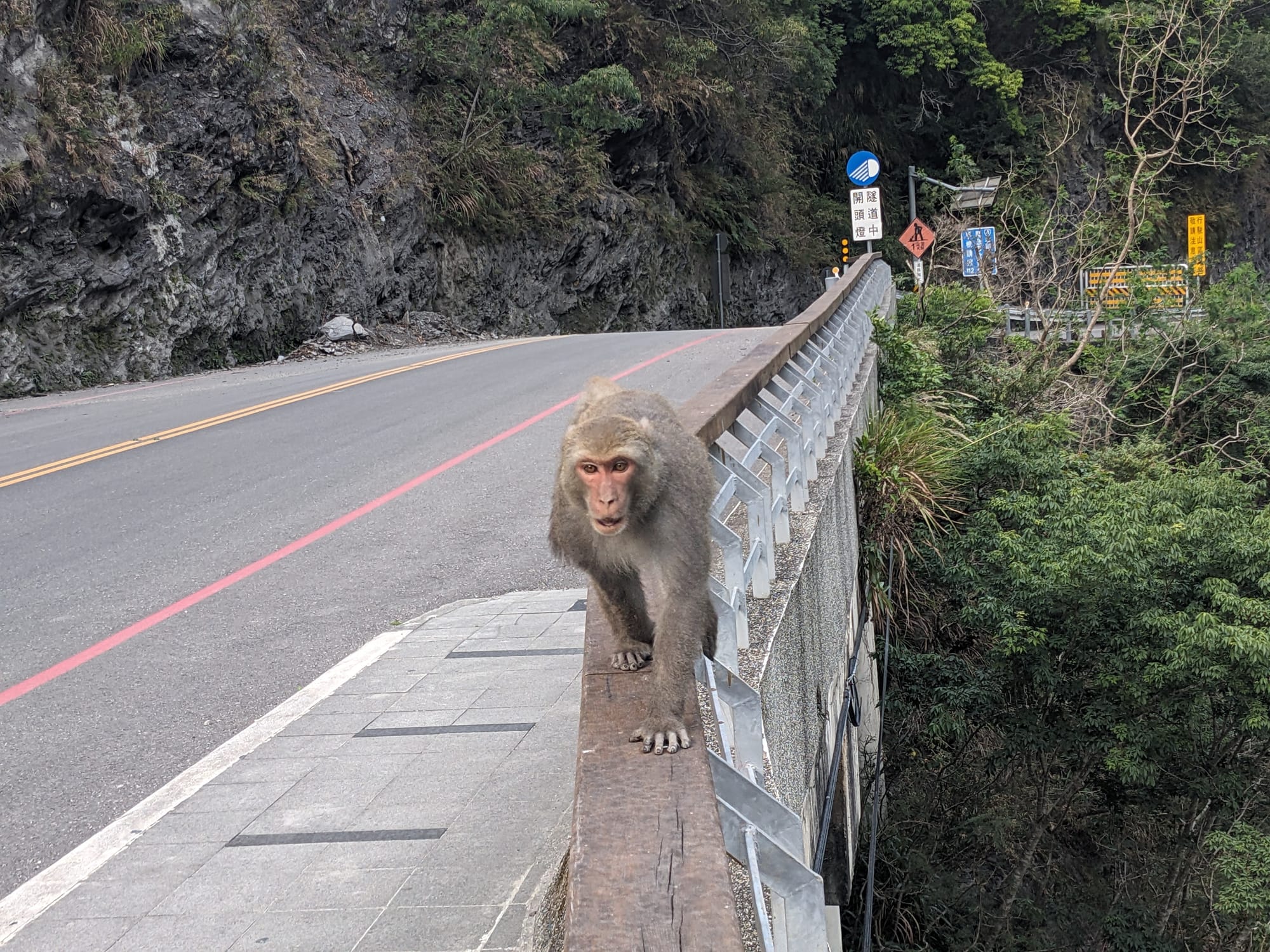 Big breakfastLast chance for pocari sweat for 100kmFew photos on the climbAt the top!Aero socks for descent courtesy of Glen. Entschuldigung Through the checkpoint at Taroko Gorge. We had a one hour window to get there.The national park was deserted and we had the entire park to ourselves. Something about a recent earthquake? You were allowed in btw50km of downhill!Road looked a bit unpassable from this angleBut had been clearedClouds rolling inNo cars/buses the whole wayWith no tourists and the 7-11 closed, this monkey unlike the others came up, flexed and tried to reach into my snack bag on the bike. Rude.arrived. These slippers hurt