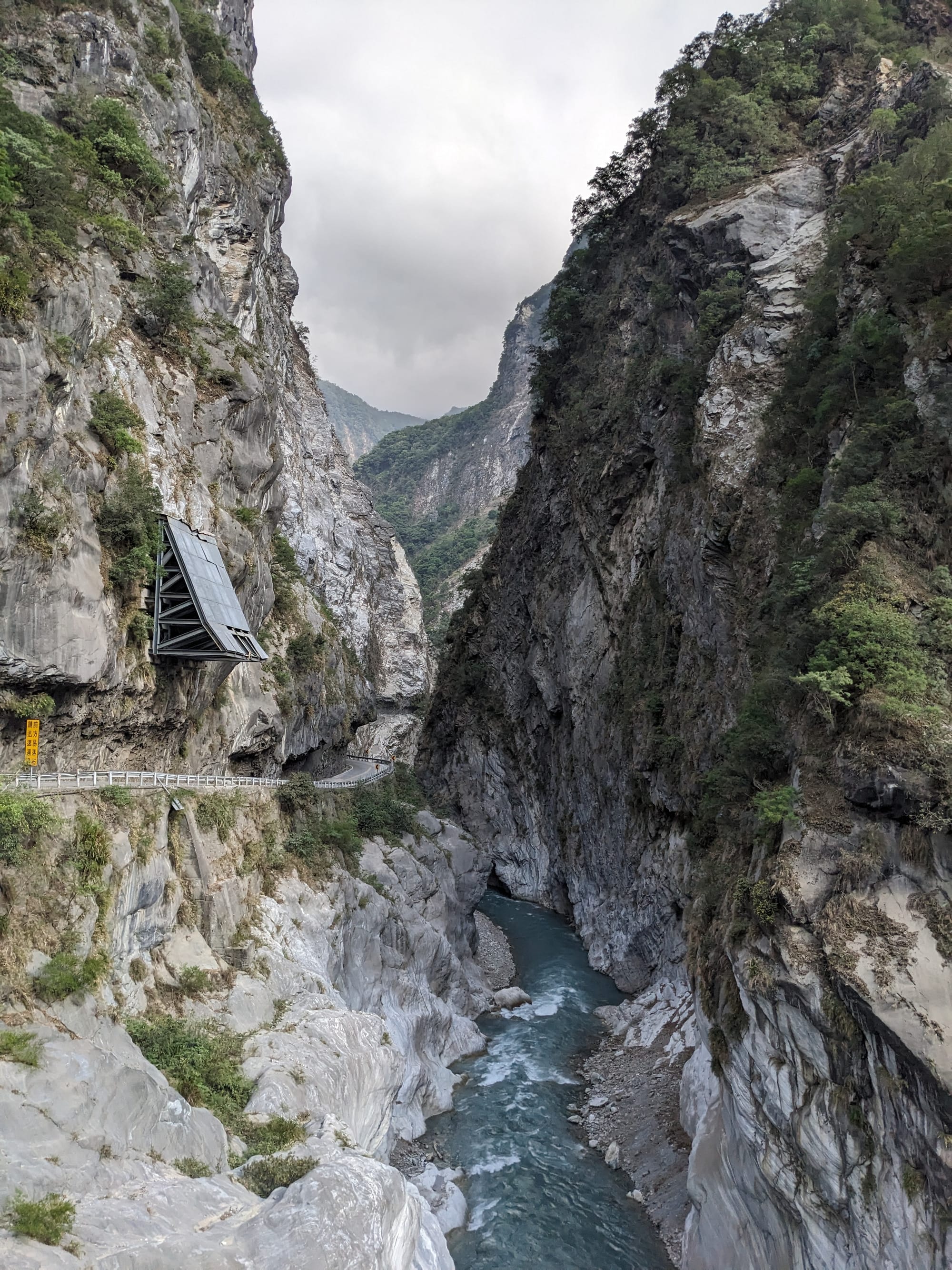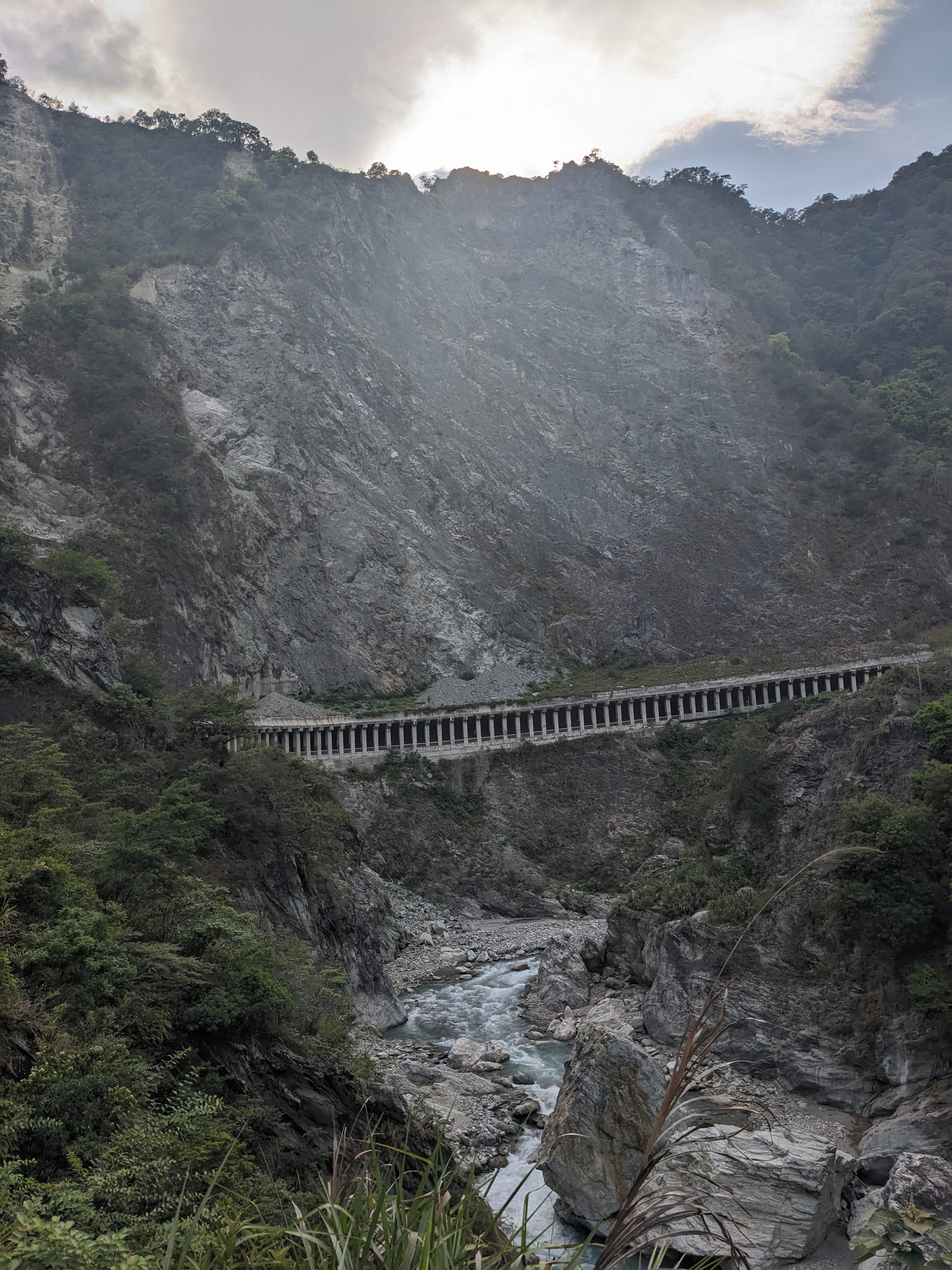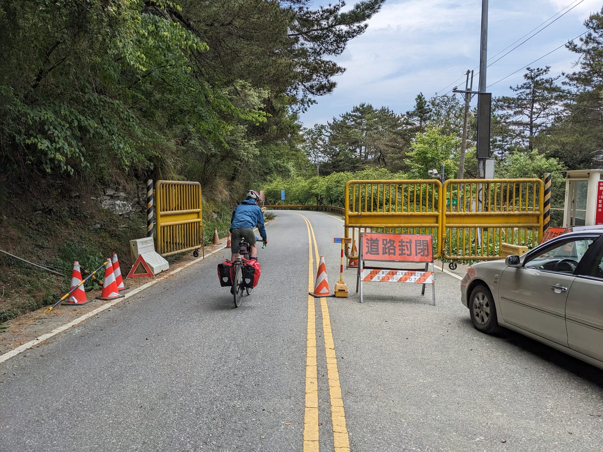 Big breakfastLast chance for pocari sweat for 100kmFew photos on the climbAt the top!Aero socks for descent courtesy of Glen. Entschuldigung Through the checkpoint at Taroko Gorge. We had a one hour window to get there.The national park was deserted and we had the entire park to ourselves. Something about a recent earthquake? You were allowed in btw50km of downhill!Road looked a bit unpassable from this angleBut had been clearedClouds rolling inNo cars/buses the whole wayWith no tourists and the 7-11 closed, this monkey unlike the others came up, flexed and tried to reach into my snack bag on the bike. Rude.arrived. These slippers hurt