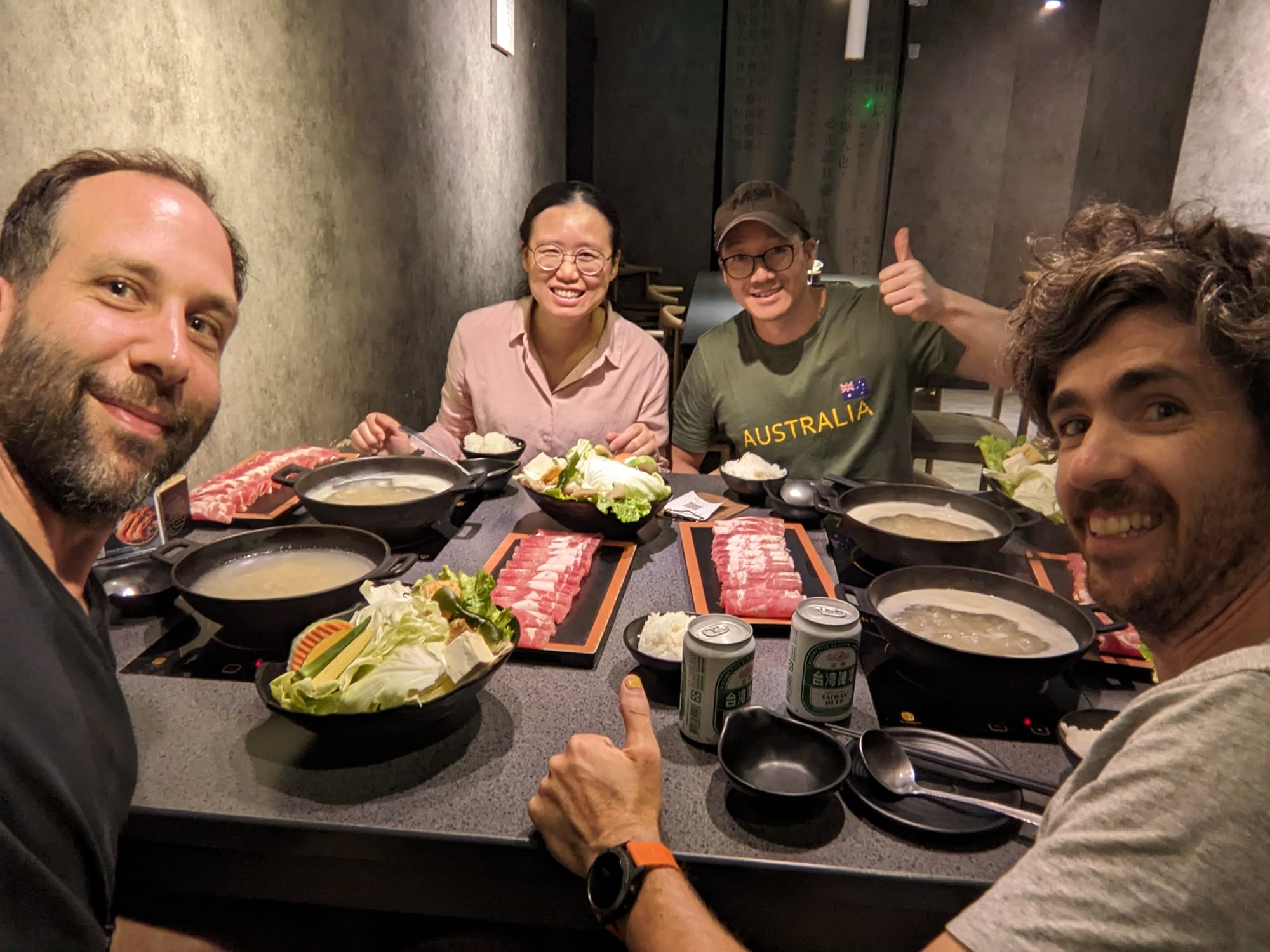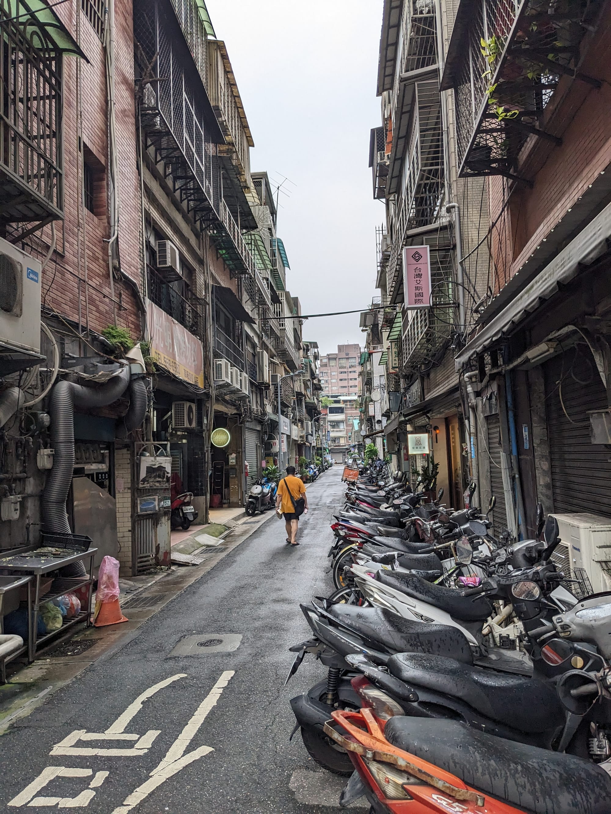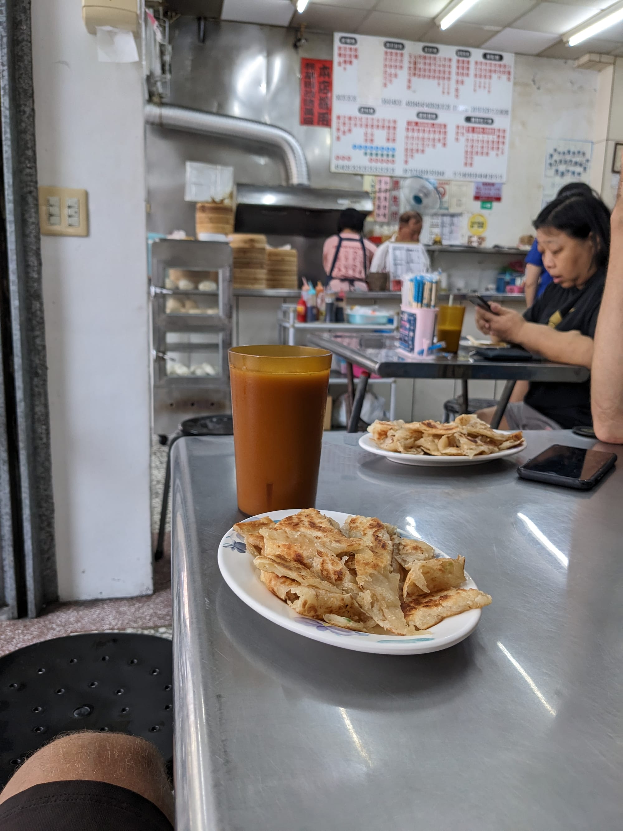 Day 11 Jiaoxi - Taipei BreakfastTea infused oil pastaRolling back towards Taipei Back to the riverThat's just a bicycle intersectionFinished riding and celebrating with Qingxia & Jay-Z