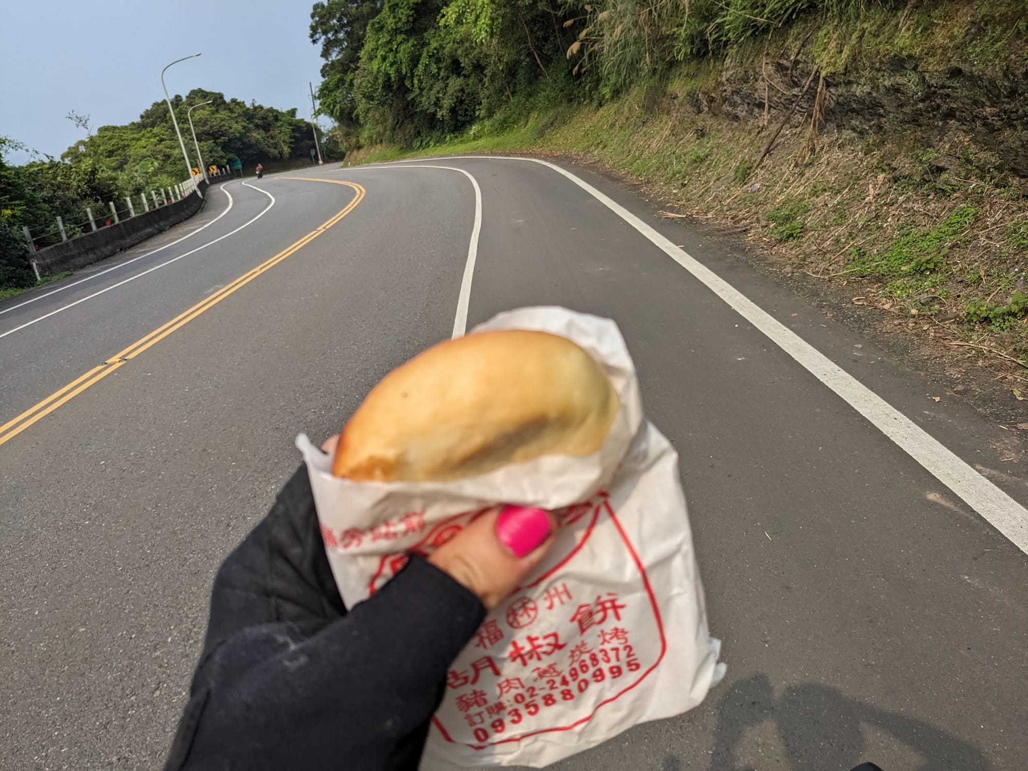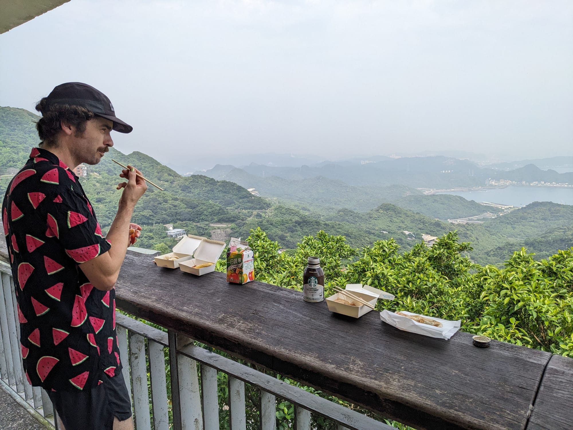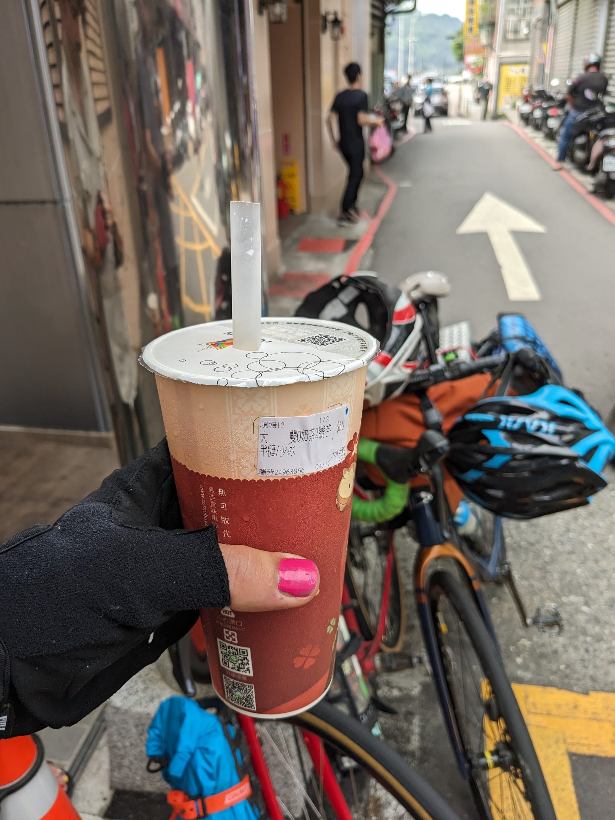 Morning view Waiting for breakfastA shortcut we consideredPhoto bombed by scooterSecond breakfastFOMO queueing Third breakfast?#BobaLyfeDown the hill to the river... and back up another hillLunchSecond lunchThis was a long tunnelVery longEarthquake building next to hotel