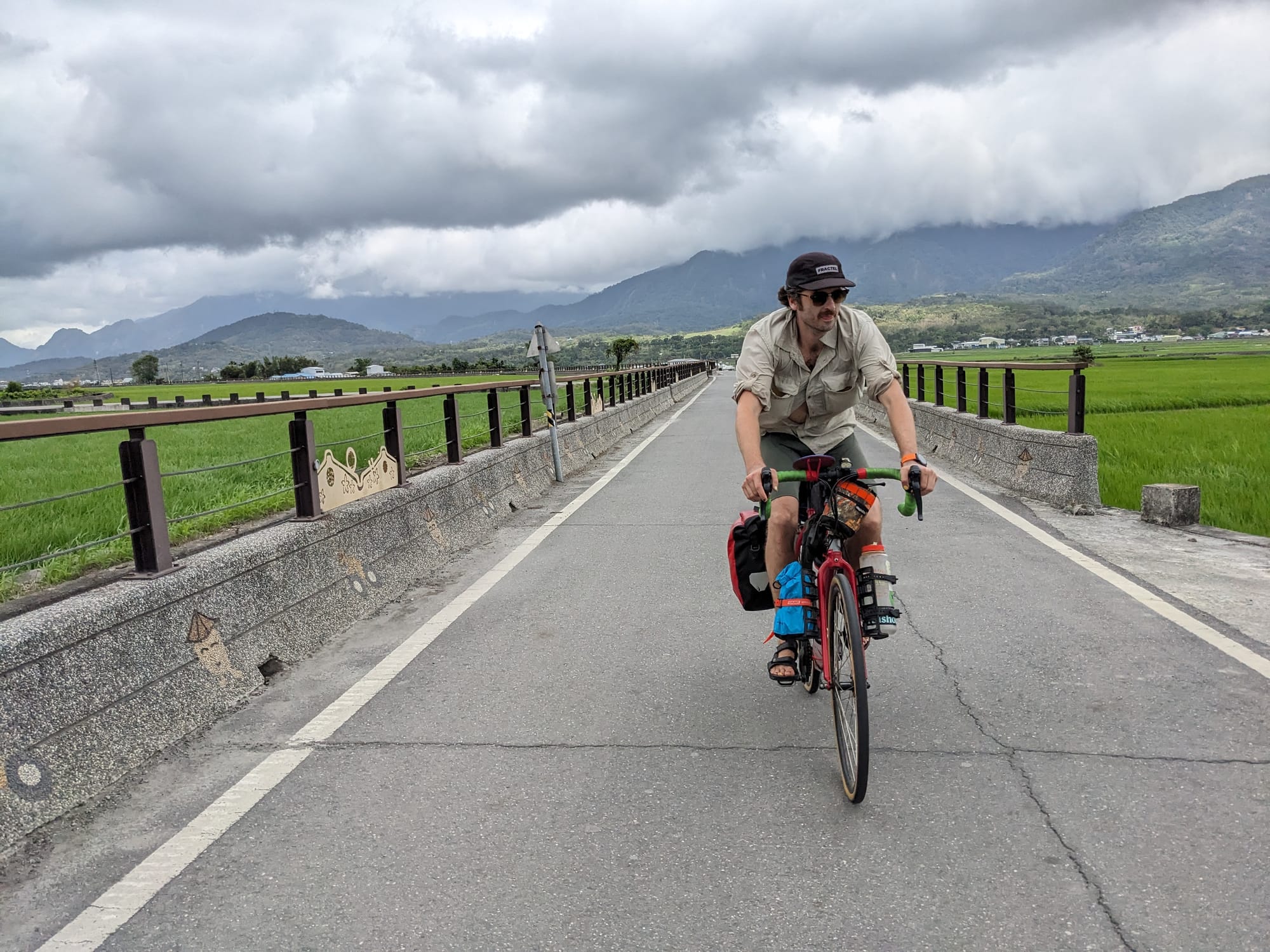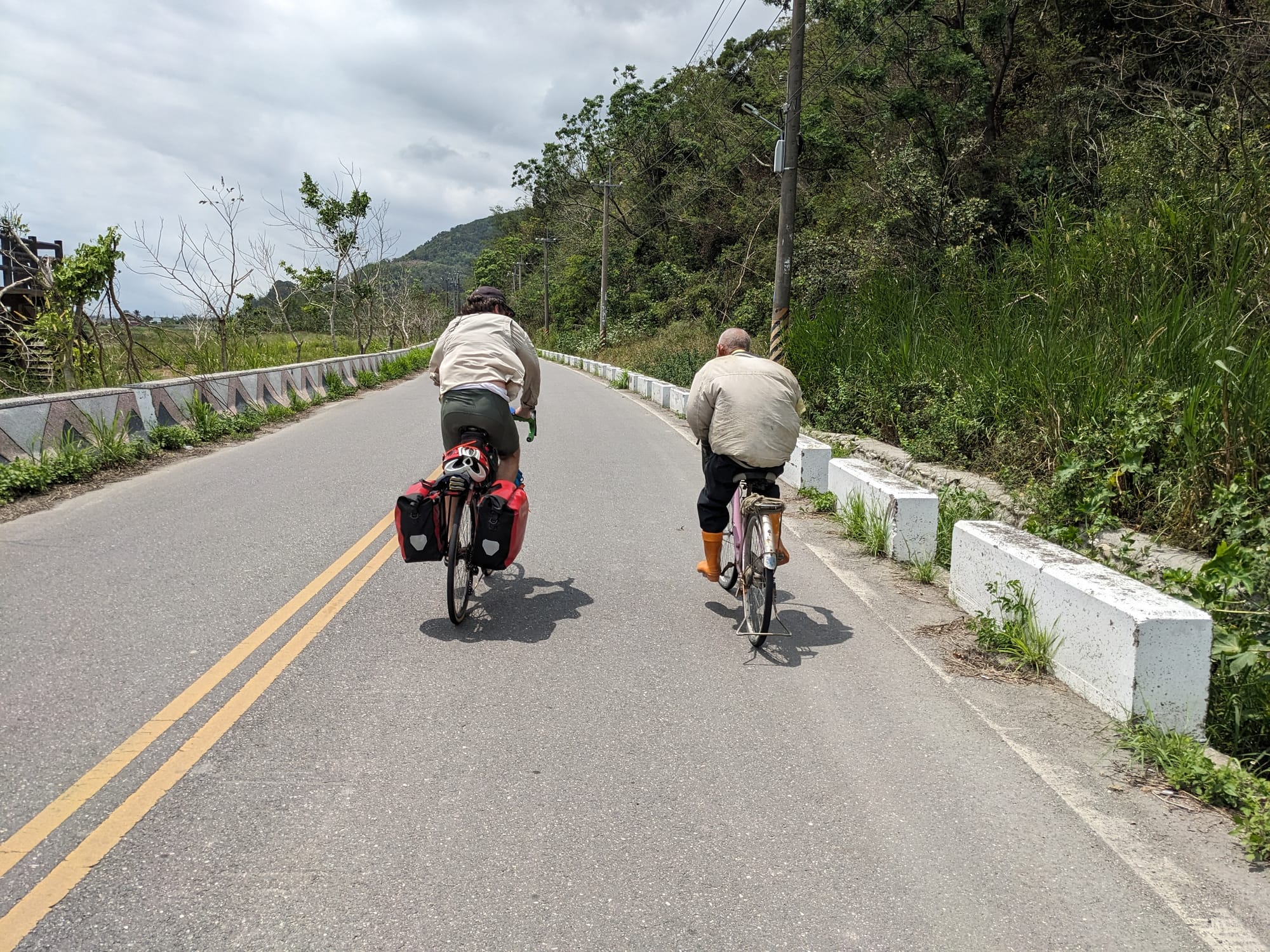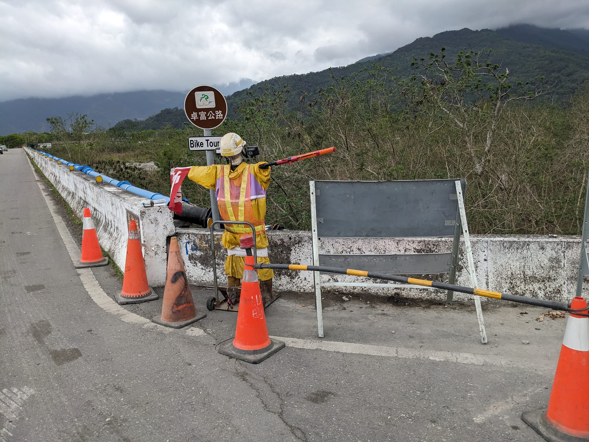 Day 4 Rui sui - Taitung The day of way too much headwind Multitasking with breakfastGumboots was local KotHLunchDetour requiredConsidering the scenic detourTaking the scenic detourDetour regretDetour successTaitung approachpedestrian - bicycle - pedestrian lanes in Taitung Gunbae!