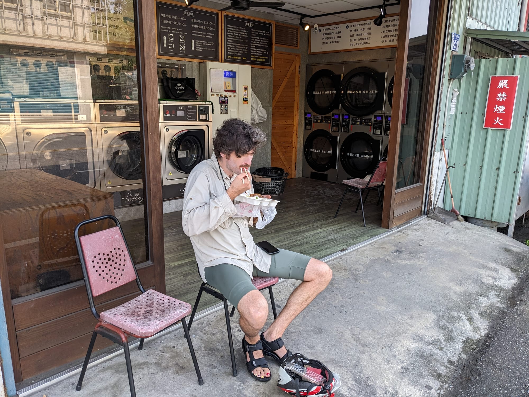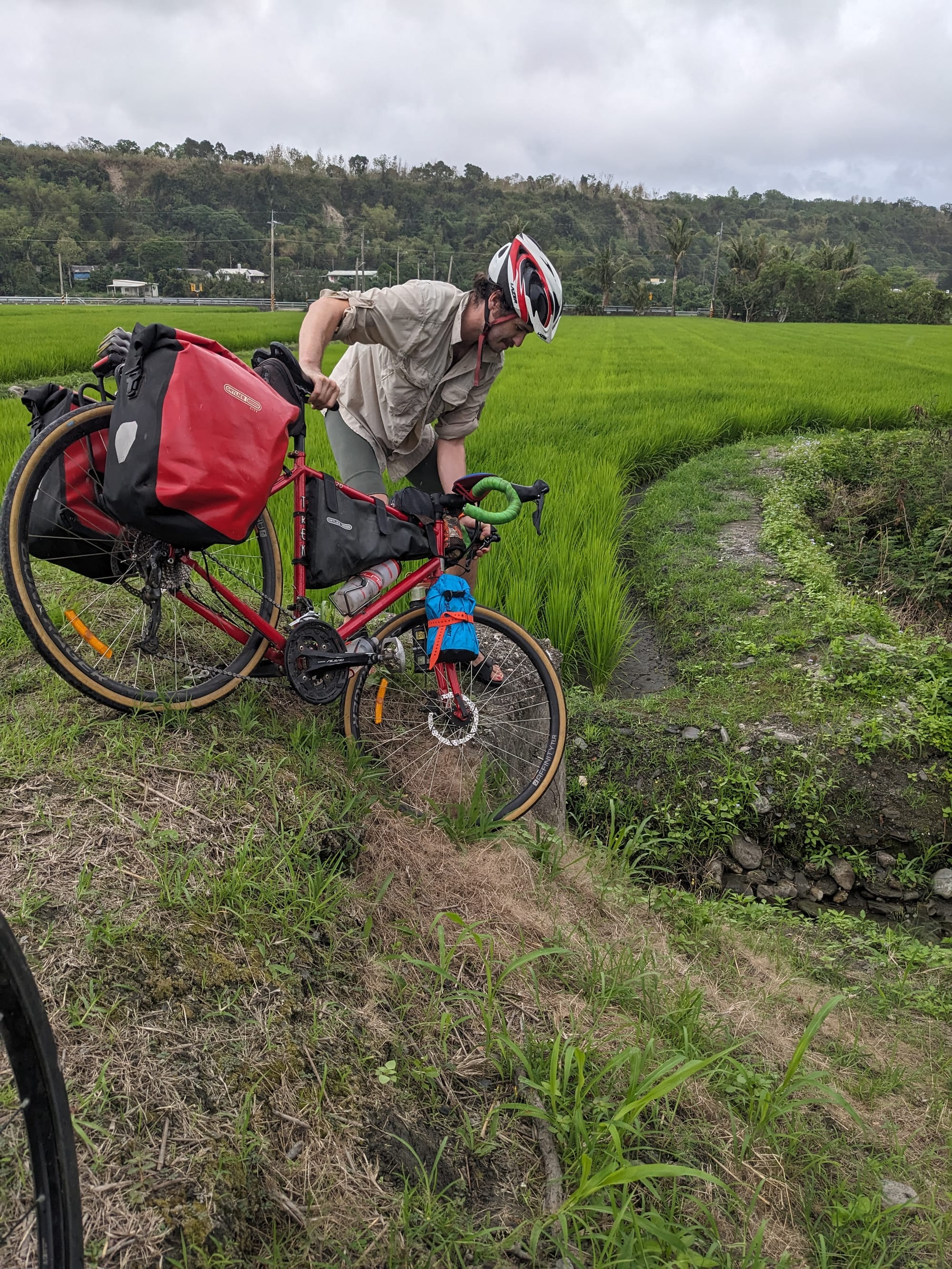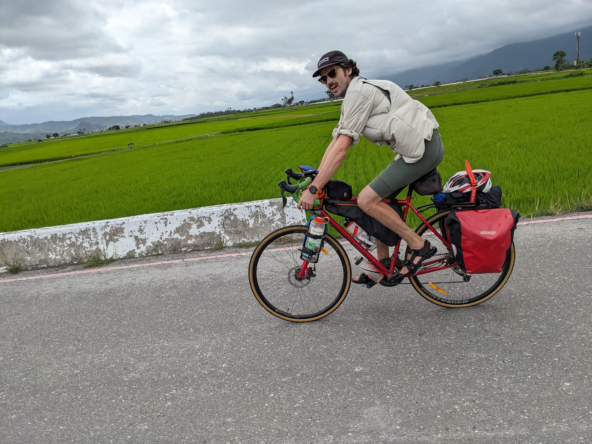 Day 4 Rui sui - Taitung The day of way too much headwind Multitasking with breakfastGumboots was local KotHLunchDetour requiredConsidering the scenic detourTaking the scenic detourDetour regretDetour successTaitung approachpedestrian - bicycle - pedestrian lanes in Taitung Gunbae!